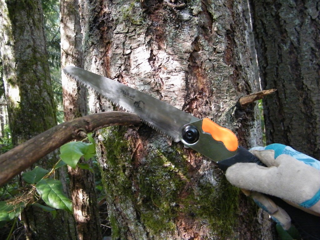 Multi-purpose saw for pruning tree branches and limbs, for camping, clearing trails, and backpacking.